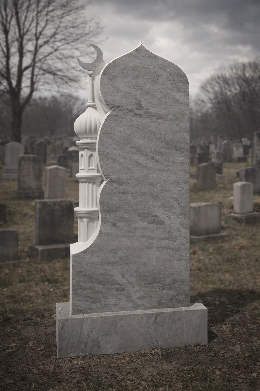 Islamischer grauer Granit-Grabstein – Moschee- und Halbmond-Grabstein