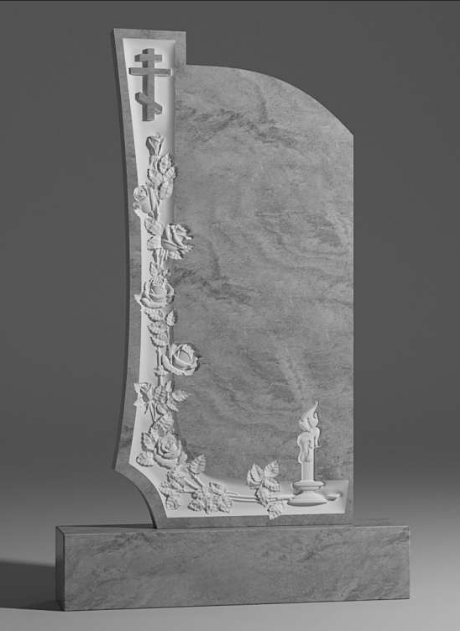 Orthodoxer Kreuzgrabstein mit Rosen und Kerze | Graviertes Gedenkdenkmal | Individuell gestalteter Grabstein aus Granit